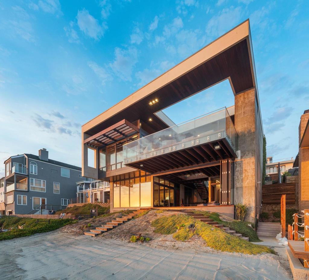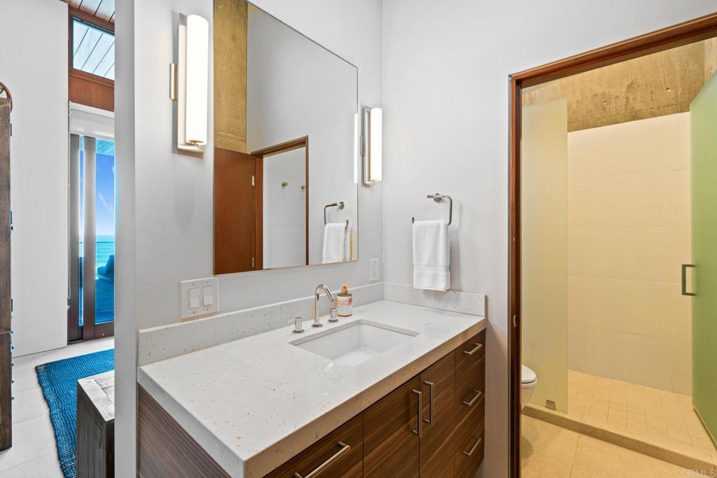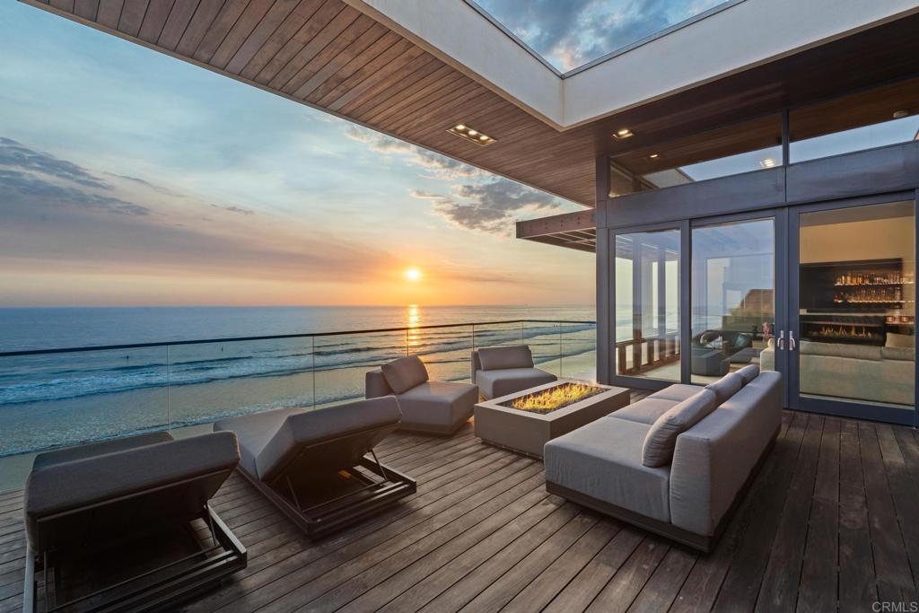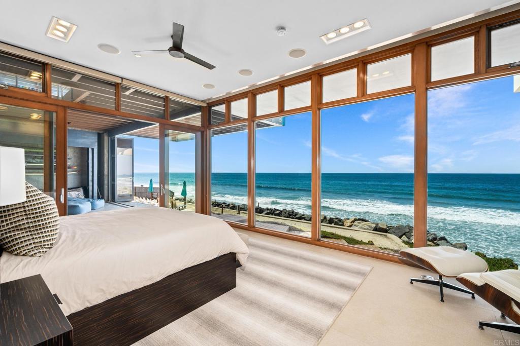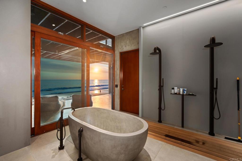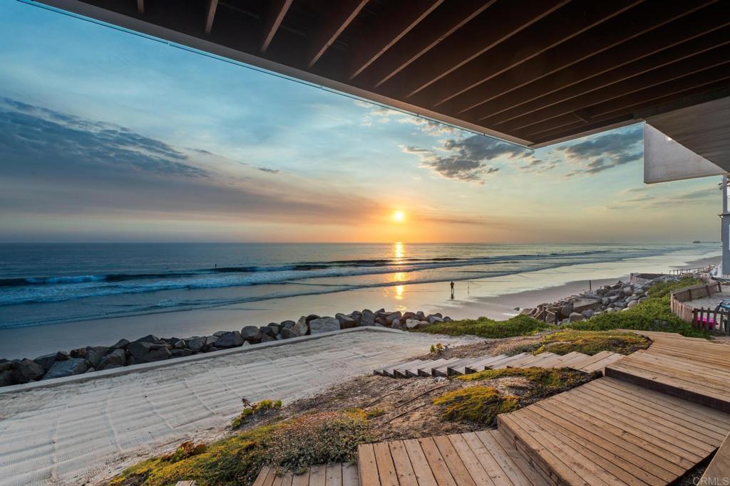 Showcasing 60' of ocean frontage across two lots on the prestigious south end of Pacific Street. Escape to this coastal stretch to experience one of Southern California's "Most Authentic Beach Towns," as cited by The New York Times. Oceanside boasts the #1 Resort in the US and California, as ranked by Travel + Leisure, the longest wooden pier on the West Coast, a museum dedicated to surfing, and the famous "Top Gun" house. This exquisite modernist retreat combines extraordinary architecture and design with a warm and inviting layout. Refreshing ocean breezes, striking sunsets, and sounds of the surf are ceaseless. Concrete custom built construction with an emphasis on seamless indoor-outdoor living, this is the So-Cal beach dream that is so hard to find! Take in panoramic unobstructed ocean views as soon as you step inside. Views stretch from La Jolla to Dana Point, and on clear days views of Catalina and San Clemente islands. Watch surfers and wild life - pods of dolphins and pelicans skimming the waves The unique highlight of this property is the vast useable and exceptional outdoor space. Enjoy year round temperate weather in your choosing of the skylit entry courtyard, main level sundeck with full bar, the beach level California room complete with jacuzzi and cold plunge, and of course the private sandy beach! Ideal as an entertainer's ultimate paradise or enjoy it as your own personal oasis & live like you're on vacation every day! This property has undergone many recent luxurious upgrades and improvements including completely new state of the art kitchen, primary suite with custom walk-in closet, awe-inspiring spa like sauna room, owned solar, new garage doors, garage lift for additional parking, electric car charging, new central A/C, tinted floor to ceiling windows for additional privacy, among much more! This property is directly ocean front, there is no road or walking/bike path between! Easy access for swimming, surfing, or walking the coastline to the Oceanside Pier. Positioned between Carlsbad Village and Downtown Oceanside, you'll never run out of things to do. Enjoy Michelin star restaurants, trendy coffee shops, weekly farmer's markets, boutique shopping, and nightlife all within minutes! Don't miss your chance to own this unparalleled coastal retreat.