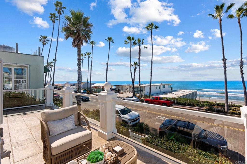 This dreamy beach house is the one you have been waiting for -- showcasing breathtaking, unobstructed white-water ocean views along one of Oceanside's most sought-after stretches of sand. Perfectly positioned just steps to the beach and only two blocks to the iconic Oceanside Pier, this is true coastal living with walkability to everything. Designed with a flexible floor plan, the home lives beautifully as a single expansive residence or as two distinct units. The lower level can function as a fully self-contained retreat with its own kitchen, living room, two bedrooms, and full bathroom, ideal for guests, multigenerational living, or income potential. Two separate staircases provide privacy and convenience, with potential space to install a future elevator if desired. Upstairs, the main living and dining areas capture sit-down ocean views that immediately draw you in. Large windows invite in natural light and sea breezes, while the spacious deck becomes an extension of your living space, the perfect setting for sunset dinners, morning coffee, and soaking in the rhythm of the waves below. An expansive primary suite enjoys access to an ocean view balcony, a quiet spot for morning coffee and fresh ocean air. For those looking to elevate the experience even further, the property includes plans for a future rooftop deck, an incredible opportunity to expand your outdoor living space and take advantage of even more panoramic coastline views. The home blends timeless architectural character with meaningful upgrades, including travertine flooring, new modern light fixtures, central A/C, new exterior paint, and an attached two-car garage. The front yard and patio offer exceptional curb appeal and a welcoming first impression for guests. With no HOA, completely detached living, easy beach access directly across the street, and downtown Oceanside's vibrant dining, coffee shops, breweries, and boutiques just steps away, this is a rare opportunity to own a versatile beach property in the heart of it all.